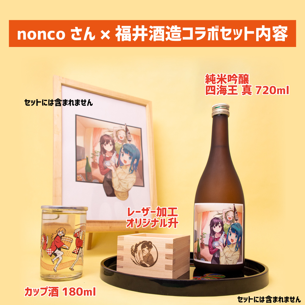 内容物    : 1.限定イラストラベル4合瓶(四海王 真),2.限定イラストラベルカップ酒,3.限定イラスト一合升